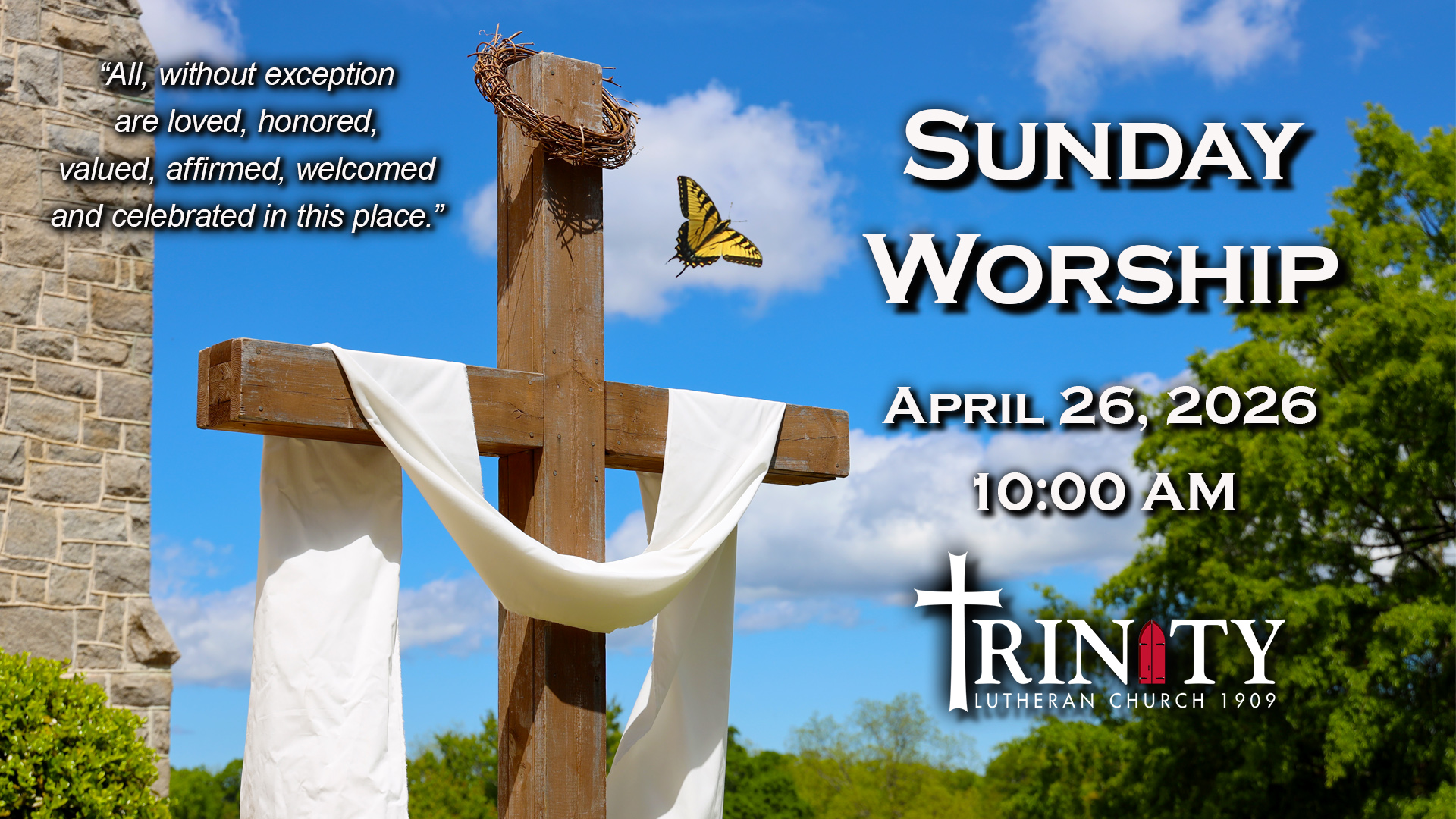 Trinity is passionate about being a congregation that welcomes, includes, accepts, affirms, embraces, and celebrates all people. And ALL really means ALL! If you are brown, black, or white, if you are poor or rich or somewhere in between, if you are male or female, young, old, or in the middle, if you are gay, straight, bi, or trans, if you have spent time in jail or on the street, if you are struggling with addiction or mental illness, if you are married, single, or divorced, if you have children or not, you have a place in this community of faith. You matter to us! You are valued in God’s kingdom. Trinity cares about you! God adores you!